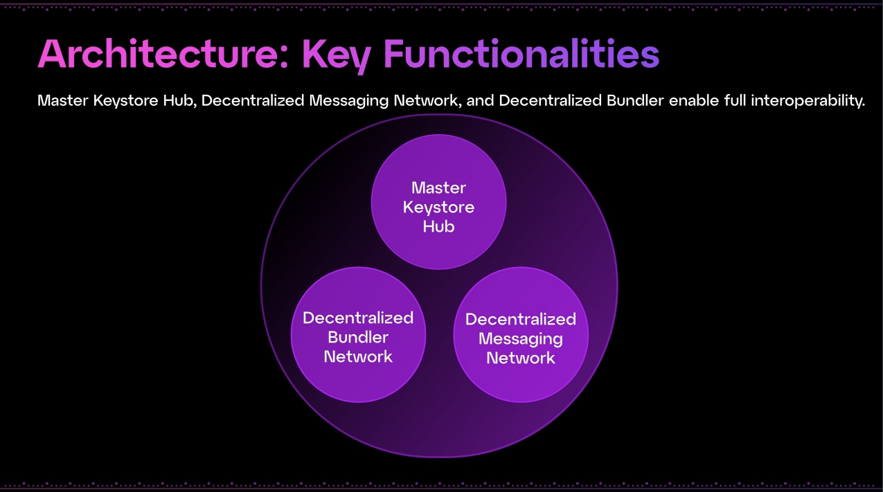 이 모듈식 L1 내에서 다음 모듈은 Universal Accounts의 설계 및 지속적인 조정을 지원합니다. 마스터 키스토어 허브: Particle Network는 모든 네트워크에서 스마트 계약 배포 및 업데이트를 조정하는 중앙 허브 역할을 하며, 각 Universal Account 인스턴스 간에 설정을 자동으로 동기화하고 네트워크 간에 완전한 상태 패리티를 보장합니다. 계정 설정은 Particle Network에 저장되어 모든 인스턴스에서 진실의 중앙 소스로 사용됩니다. 그런 다음 Particle Chain은 이러한 설정을 준수하는 새 인스턴스를 배포하거나 이러한 설정이 변경됨에 따라 기존 인스턴스를 업데이트하기 위해 크로스 체인 메시지를 용이하게 합니다. 분산 메시징 네트워크(DMN): Particle Network에서 Relayer 노드는 메시징 프로토콜을 사용하여 외부 체인의 UserOperations가 성공적으로 실행되었는지 모니터링한 다음 Particle Chain에서 실행 상태를 정산합니다. 외부 체인 이벤트와 상태 이벤트 정산을 모니터링하는 임무를 맡은 이 분산 Relayer 노드 네트워크를 분산 메시징 네트워크라고 합니다.